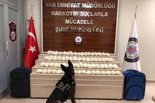 Van İl Emniyet Müdürlüğü tarafından yapılan açıklamaya göre, "20 Aralık 2018 günü Narkotik Suçlarla Mücadele Şube Müdürlüğü tarafından, İpekyolu İlçesi Terzioğlu Caddesi üzerinde oluşturdukları uygulama noktasında durumundan şüphelenilerek durdurulan 65 plaka sayılı kamyonette, Narkotik Madde Arama Köpeği ALFA ile birlikte yapılan detaylı aramada; araç içerisinde bulunan 2 adet valiz içerisine zulalanmış 121 paket halinde toplam 55 Kilo 328 Gram Eroin Maddesi ele geçirildi." denildi.