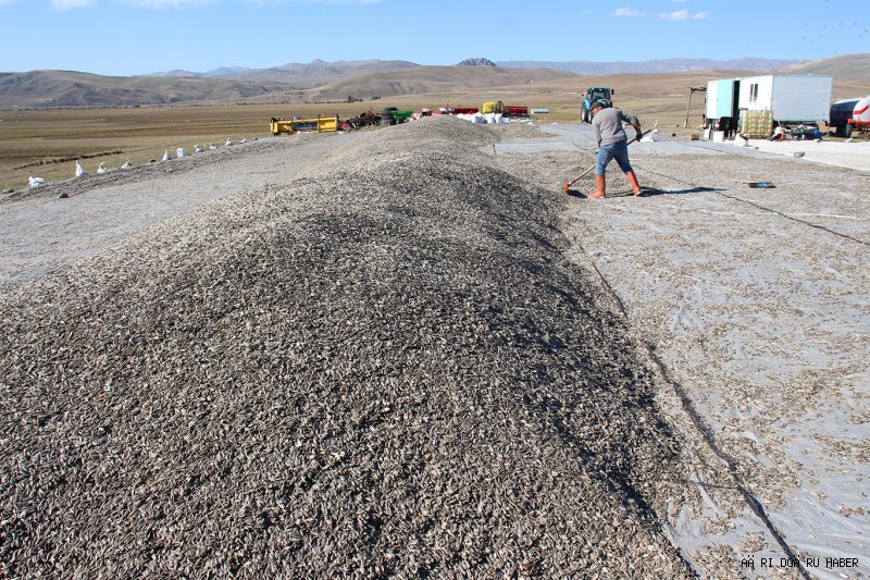 Ağrı merkeze bağlı Çukuralan (Hêlıksan) köyünde ürünün hasadı ve elde edilmesi beklenen gelir ile ilgili İLKHA'ya konuşan Ağrı Tarım ve Orman Müdürü Mehmet Hüseyinoğlu, bu yıl yapılacak olan hasadın ardından ilin tarım ekonomisine yaklaşık 310 milyon TL değer katmasını beklediklerini belirtti.35 bin dekara yakın alanda ekim yapıldığını hatırlatan Hüseyinoğlu, "Ay çiçeği son yıllarda özellikle Ağrı ilimizde revaçta olan bir ürün. Ekim alanı da özellikle çerezlikte artmaya başladı. Geçtiğimiz yıl 2023 yılında 34 bin dekar 35 bin dekara yakın bir alan ekim oldu ama bunun 17 bin dekarı yağlık 18 bin dekara yakını da çerezlik ayçiçeğiydi. Burada toplamda 220 milyon TL'ye yakın bir ekonomik girdi sağlandı şehrimize. Bu yıl yine 35 bine yakın bir ekim alanı var ama bunun sadece 500 dekarlık alanı yağlık ay çiçeği. Geriye kalan 34 bin dekarı çerezlik ay çiçeği. Bu da toplamda şehrimize 310 milyona yakın bir girdiği anlamına geliyor. Bu şehrimiz açısından ekonomik olarak çok büyük bir ekonomik girdiği anlamına geliyor. Bunlar işte bizim Tarım ve Orman Bakanlığının sağladığı destekler haricinde sadece ürünün gelirinden elde edilen destekler." ifadelerini kullandı.Hüseyinoğlu, "Tarım ve Orman Bakanlığımız olarak da biz zaten değişik kalemlerde sürekli çiftçilerimize ekstra destekleme sağlıyoruz. Tabii tarım tek başına ekimden ibaret değil. Bu büyük bir sektör, burada çiftçisi, ilacı satanı, hasadı yapanı bu işi alan, satan aracıları, nakliyecileri, yani aslında siz bir ürün ektiğiniz zaman ülkede bundan birçok kişi ekonomik olarak gelir elde ediyor." dedi.Ay çiçeğinin ekimi için köylerinde yaklaşık 1200 dönüm alana ay çiçeği ekimi yapıldığını belirten Tuncer Özdemir, "Bu köyde 1700, 1800 arası hektar arızi ekiyorum. Ay çekirdeği çerezlik ay çekirdeği. Köyde aşağı yukarı 1200 dönüm arazi ekiliyor çerezlik ay çiçeği olarak. 4 yıldır yapıyorum bu işi. Daha önce yağlık da denedim şu an çerezlik ekiyoruz köyümüzde. Köyümüze büyük bir katkısı oldu köyümüze. Tabii hem insan gücü olarak hem şehir istihdamına berberinden tut gübrecisine, akaryakıtçısından tut bakkalına kadar katkısı oldu." şeklinde konuştu. (İLKHA)