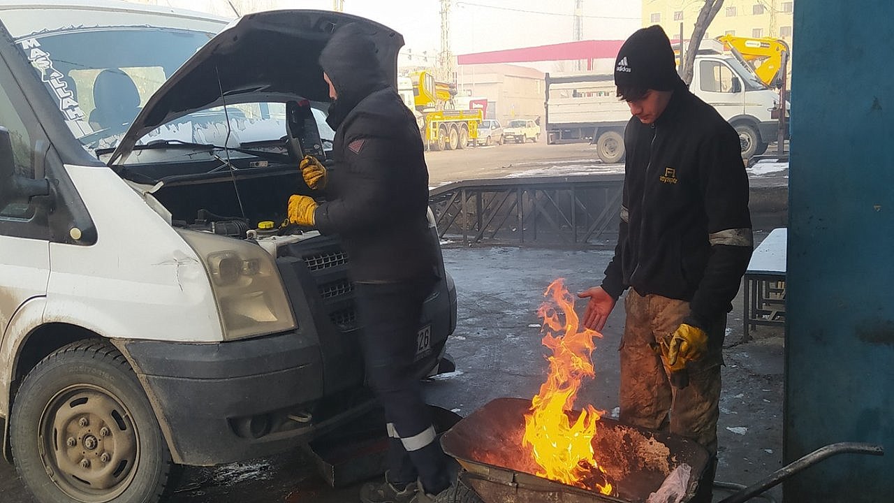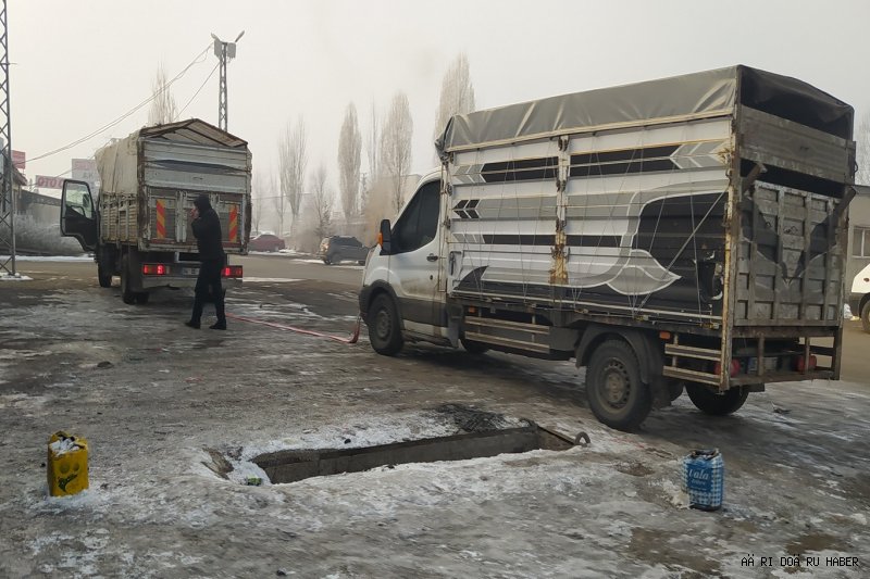 Kış mevsiminin çetin geçtiği Ağrı'da hava sıcaklığı eksi 20 dereceye kadar düştü. Murat Nehri dondu, tamirciler yaktıkları ateşin yanında ısınarak çalıştı.