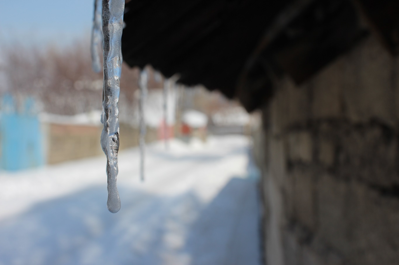 Soğuk nedeni ile bina çatılarında ve şadırvanlarda buz sarkıtları oluştu.