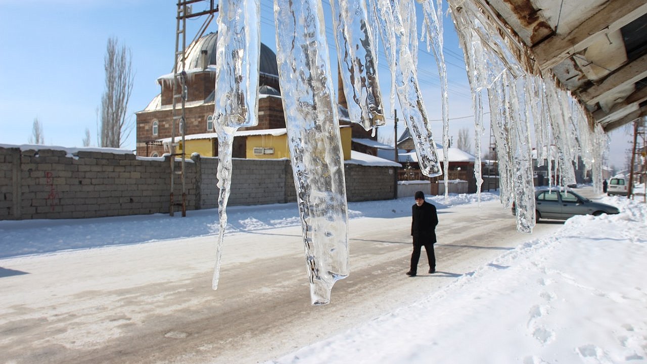 Ağrı, Ardahan, Erzurum ve Kars'ta aşırı soğuk nedeniyle çatılarda uzun buz sarkıtları oluştu, nehir ve dereler dondu.