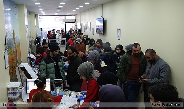Kahramanmaraş merkezli gerçekleşen ve 10 ilde yaşanan depremin ardından yetkililer tarafından yapılan çağrı üzerine harekete geçen Ağrılı vatandaşlar Cumhuriyet Caddesi'nde bulunan Kızılay Ağrı Şubesi'ne bağlı kan Verme Merkezi'ne geldi.Kan verme noktasında halkın çok duyarlı davrandığını, yoğunluğa yetişmeye çalıştıklarını belirten Kızılay Ağrı Şube Başkan Yardımcısı Cahit Temel, "Allah bir daha böyle acılar göstermesin. 10 ili etkileyen çok şiddetli bir deprem yaşadık, bu deprem dolayısıyla duyarlı halkımız Kızılay Ağrı Şubesi'ne kan verme ve yardım ulaştırmak için geliyorlar. Kan almakta zaman zaman zorlandığımız oluyor çünkü büyük yoğunluk var. Elimizden geldikçe insanlarımızı yarın ve diğer günlere yönlendiriyoruz yoğunluktan. Yardım çalışması noktasında da Valilik koordinesinde faaliyetlerimizi yürütüyoruz diğer STK'lar ile birlikte. Halkımız yardım noktasında çok duyarlı, sabahtan kan vermek için insanlar birbirleri ile yarışıyor adeta." dedi. (İLKHA)
