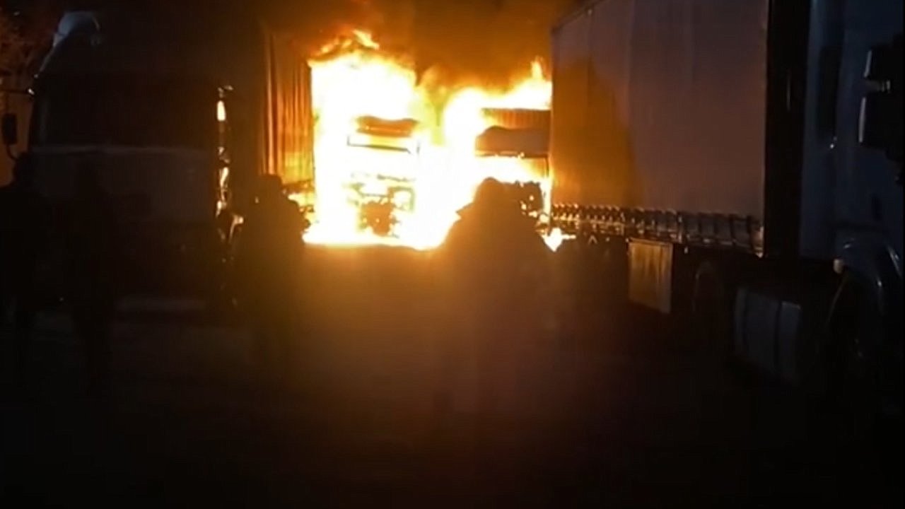 İlçede bulunan tır parkında gümrük sırası beklediği sırada alev alan tırlar kullanılamaz hale geldi.