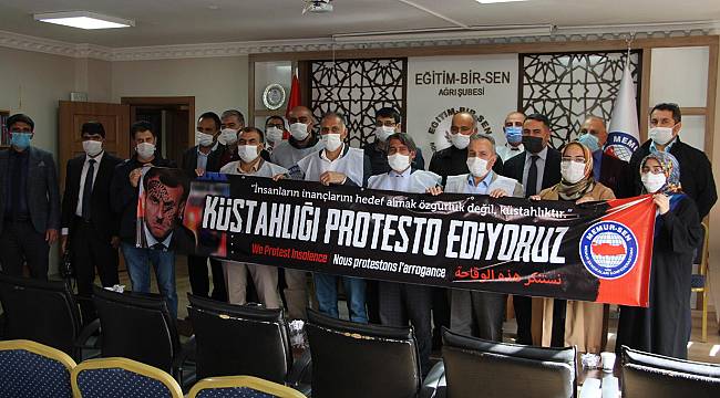 Memur-Sen Ağrı Şubesi tarafından İslam düşmanı Fransa ve Avrupa ülkelerini protesto etmek amacıyla şube binasında düzenlenen basın açıklamasına katılan eğitimciler, Batı dünyasının, Müslümanların değer yargılarını hesaba katarak adım atması gerektiğini belirtti.