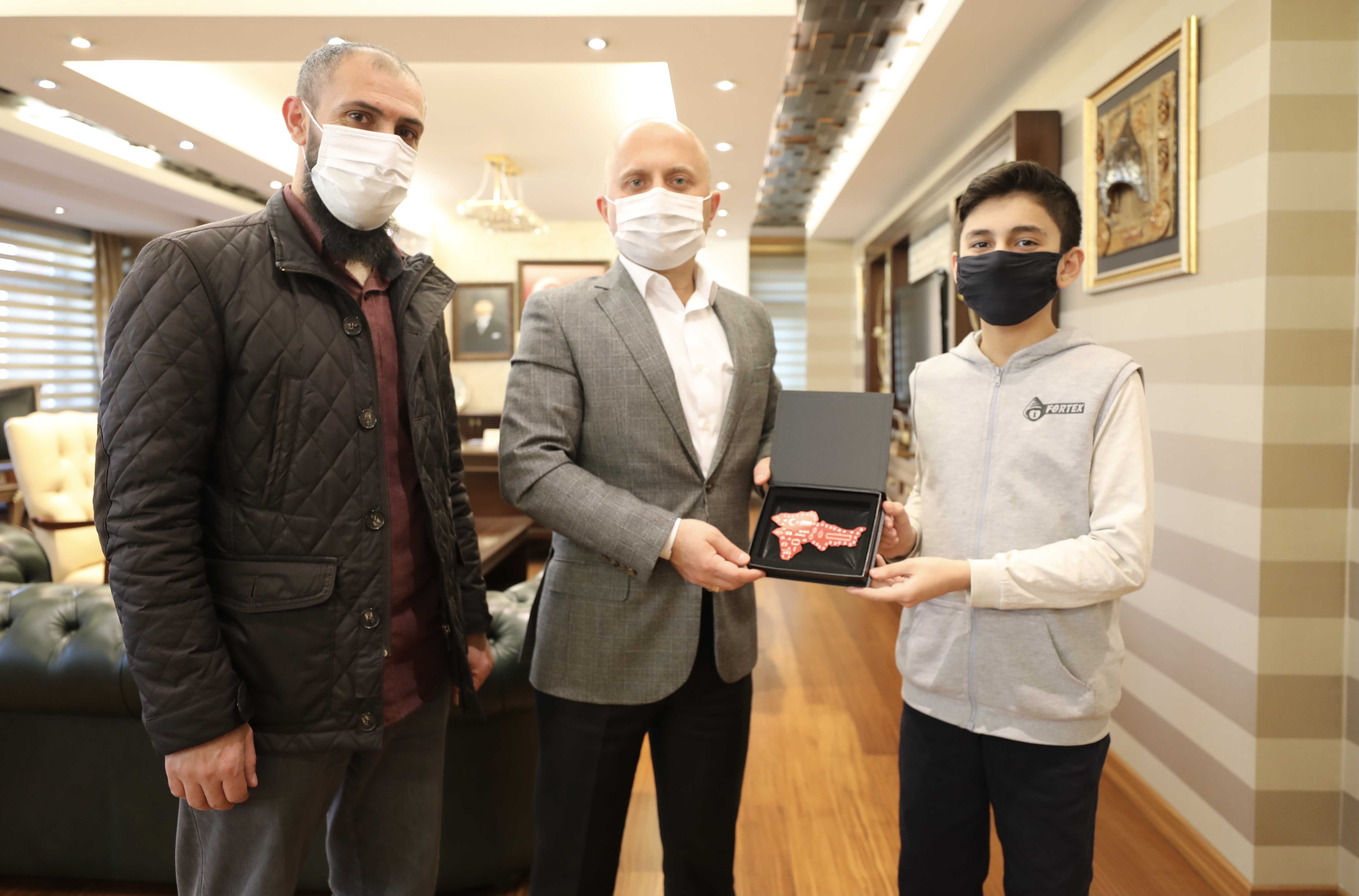 Vali Osman Varol, KODLAAĞRI projesi kapsamında almış olduğu eğitimle Ağrı Kart’ı tasarlayan öğrenci Abdullah Aslan ile bir araya geldi.