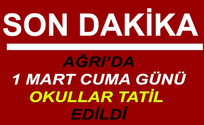 Ağrı Valiliğinden yapılan açıklamada, olumsuz hava koşulları ve kar yağışı nedeniyle il merkezi ile bağlı köylerinde eğitime 1 Mart Cuma günü ara verildiği belirtildi.
