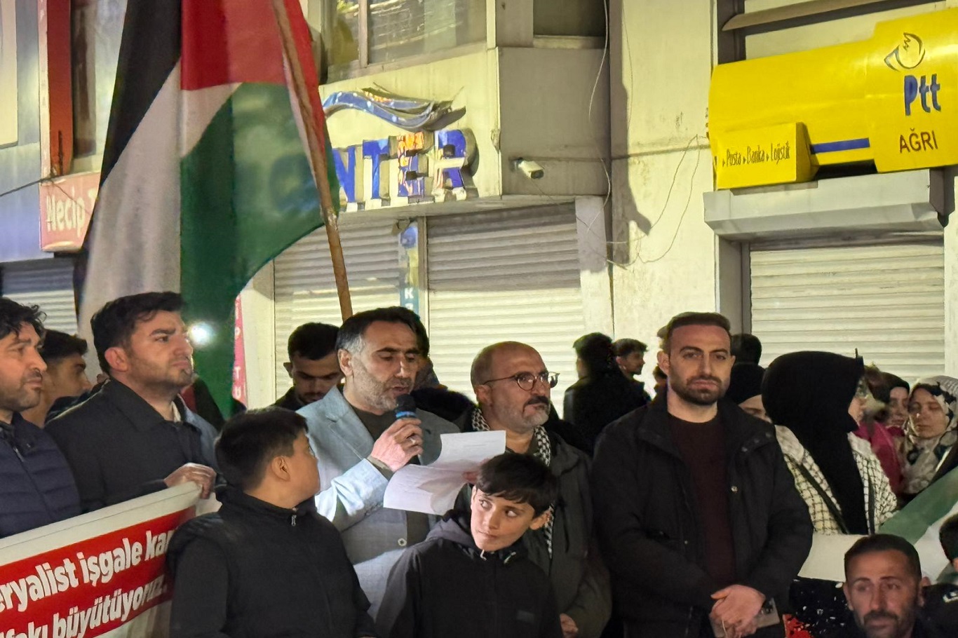 Ağrı’da halkın ve faaliyet yürüten STK temsilcilerinin katılımıyla gerçekleştirilen basın açıklamasında, işgal rejiminin uluslararası sularda gerçekleştirdiği müdahalenin hukuk tanımaz bir eylem olduğu vurgulandı.