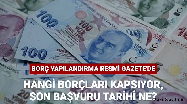 Hazine ve Maliye Bakanlığı, Ticaret Bakanlığı, Sosyal Güvenlik Kurumu, il özel idareleri, belediyeler ile Yatırım İzleme ve Koordinasyon Başkanlığına 30 Nisan 2021'e kadar olan bazı borçlar yapılandırılacak.