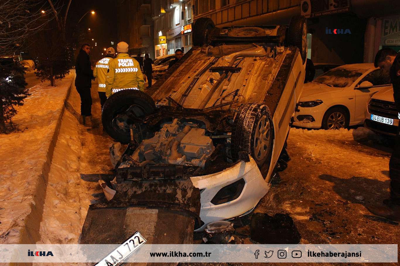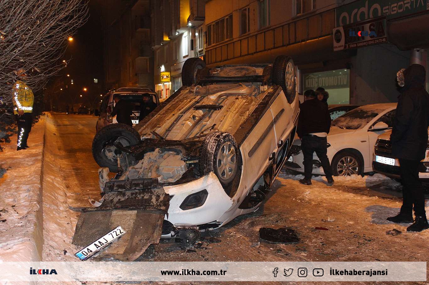 Edinilen bilgilere göre, 04 AAJ 722 plakalı G.D. yönetimindeki hafif ticari araç Hanibaba Bulvarı'nda seyir halinde ilerlediği sırada buz tutan yolda kontrolü sağlayamayarak önce aynı istikamette ilerleyen 21 FN 491 plakalı araca arkadan çarptı, ardından orta refüje çarparak ters döndü.