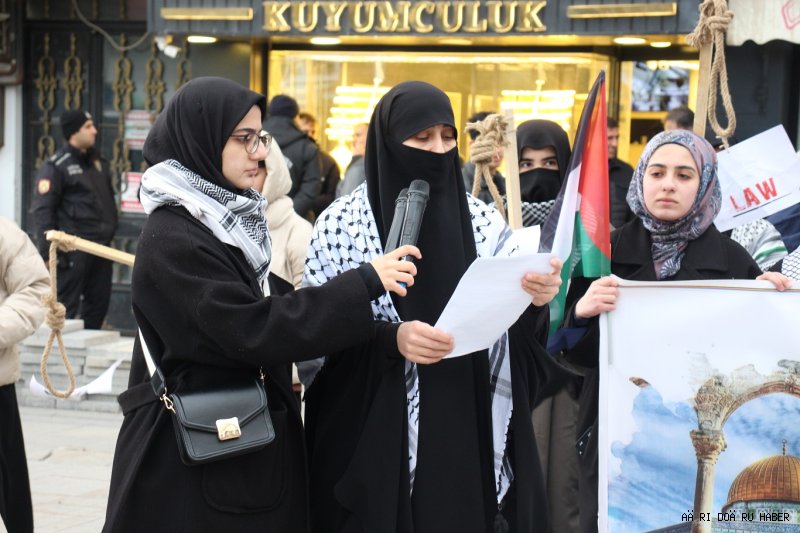 Sembolik darağacıyla mesaj verildiKatılımcıların ellerinde "Hukuk", "Adalet", "Özgürlük" ve "Filistin Halkını İdam Edecekler" yazılı dövizler taşıdığı eylemde, çarpıcı bir protesto gerçekleştirildi. Açıklamanın yapıldığı alanda kurulan temsili darağacında iki kişi Filistinli mahkumları canlandırarak boyunlarına ip geçirdi. Minyatür darağaçlarının da taşındığı etkinlikte, işgal rejiminin barbarlığı görsel bir protesto ile gözler önüne serildi."Bu karar insanlığa karşı işlenmiş bir suçtur"Grup adına basın açıklamasını okuyan HÜDA PAR Ağrı Kadın Kolları Başkanı Saliha Adıgüzel, 1967'den bu yana 1 milyondan fazla Filistinlinin esir edildiğini hatırlatarak, idam kararının gayrimeşru olduğunu belirtti. Adıgüzel, şunları söyledi:"Sözde yasa tasarılarıyla Filistinli esirlerin idam edilmesine dair alınan karar, bir halkın yok edilmesine yönelik soykırım suçunun en ağır tablosudur. Bu zulme sessiz kalan devletler, işgal rejiminin suçlarına ortak olmaktadır. Görülmemiş bu vahşete dur diyecek ortak bir irade şarttır."Kudüs ittifakı ve somut yaptırım çağrısıAçıklamada, Kudüs ve Mescid-i Aksa’nın tüm ümmetin ortak değeri olduğu vurgulanırken, sadece kınama mesajlarıyla yetinilmemesi gerektiği ifade edildi. Adıgüzel, çözüm önerilerini şu maddelerle sıraladı:"Türkiye ve bölge ülkeleri güç birliği yaparak askeri ve siyasi bir 'Kudüs İttifakı' kurmalıdır. Gazze'de soykırım suçuna karışan Türkiye vatandaşı siyonistlerin vatandaşlıktan çıkarılmasını öngören yasa teklifi ivedilikle yasalaşmalıdır. ABD ve siyonist rejime lojistik destek sağlayan tüm askeri üsler (İncirlik, Kürecik vb.) kapatılmalıdır. Uluslararası Ceza Mahkemesi’nin tutuklama kararı pratikte uygulanmalı, katiller cezalandırılmalıdır. Siyonist sermayeye destek veren ürünlere yönelik boykot, bir dönemlik değil 'ömür boyu' bir bilinçle sürdürülmelidir." (İLKHA)
