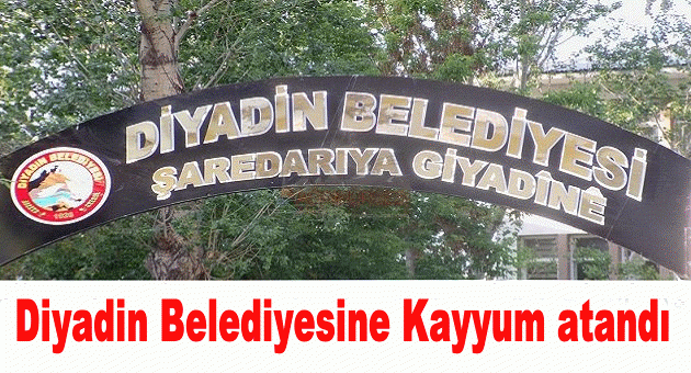 İçişleri bakanlığınca Türkiye genelinde 28 Belediyeye kayyum atandı.2si İl 24ü ilçe 2si belde olmak üzere toplamda 28 belediye başkanının yerine iiçişleri bakanlığınca kayyum atandı.Diyadin ilçesi belediye başkanlığınada Kaymakam Mekan Çeviren getirildiişte kayyum atanan 28 belediye