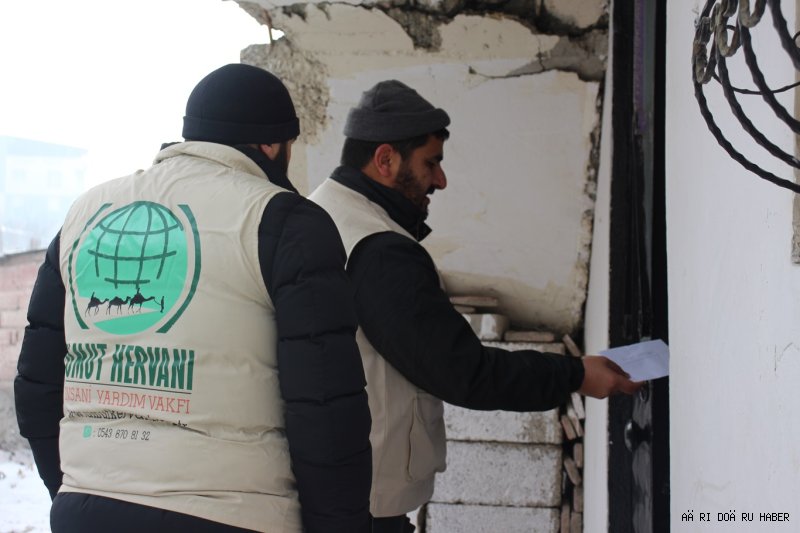 Kış mevsiminin ağır şartlarının yaşandığı Ağrı'da daha fazla ihtiyaç sahibine ulaşmak için çalışmalarını sürdüren dernek yönetici ve üyeleri, önceden tespit ettikleri ailelerin evlerini ziyaret ederek nakdi yardımlarını teslim ediyor.