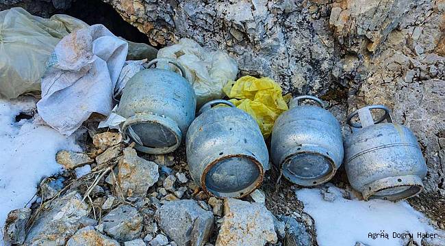 Operasyonda tespit edilen 8 mağara ve barınakta yapılan aramada, 10 adet büyük tüp, bir adet piknik tüpü, 50 metre halat, 10 adet büyük boy pil, 36 çift ayakkabı, jelikan, kürek, hilti ucu, 155 metrekare ebatlarında 2 parça naylon branda, giysi, 3 hortum, yemek kazanı ve pompa ele geçirildi.