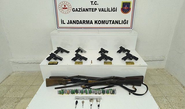 Gaziantep Cumhuriyet Başsavcılığı koordinesinde yürütülen fiziki ve teknik takip sonucunda Şahinbey, Şehitkâmil, Oğuzeli ve Karkamış ilçelerinde 7 ayrı şüpheli şahsa ruhsatsız silah bulundurmaktan işlem yapıldı.Şahısların ikamet, araç ve işyerinde yapılan arama neticesinde; 12 adet ruhsatsız tabanca ve şarjörü, 7 adet ruhsatsız av tüfeği ve şarjörü, 200 adet tabanca fişeği, 105 adet av tüfeği fişeği ele geçirildi.Şüpheli şahıslardan 1'i sevk edildiği adli makamlarca tutuklanarak cezaevine gönderilirken 6'sı adli kontrol kararıyla serbest bırakıldı.Yapılan açıklamada, "Gaziantep İl Jandarma Komutanlığınca halkımızın huzur ve güvenliği için silah kaçakçılığı ile mücadeleye yönelik çalışmalara 7/24 aralıksız devam edilmektedir." denildi. (İLKHA)