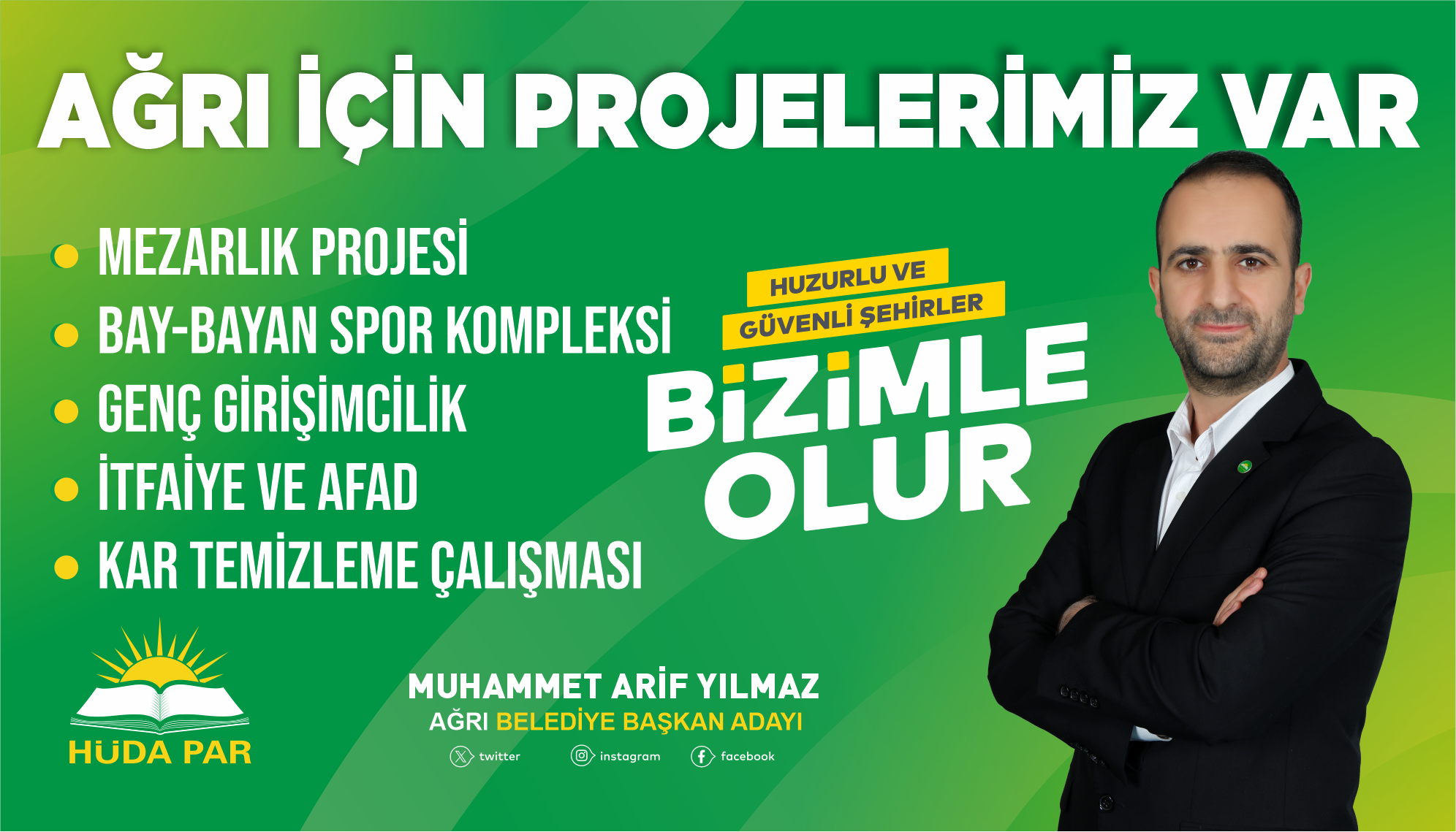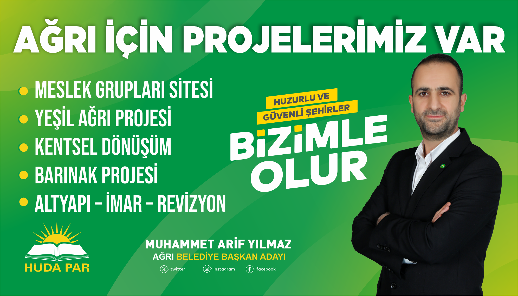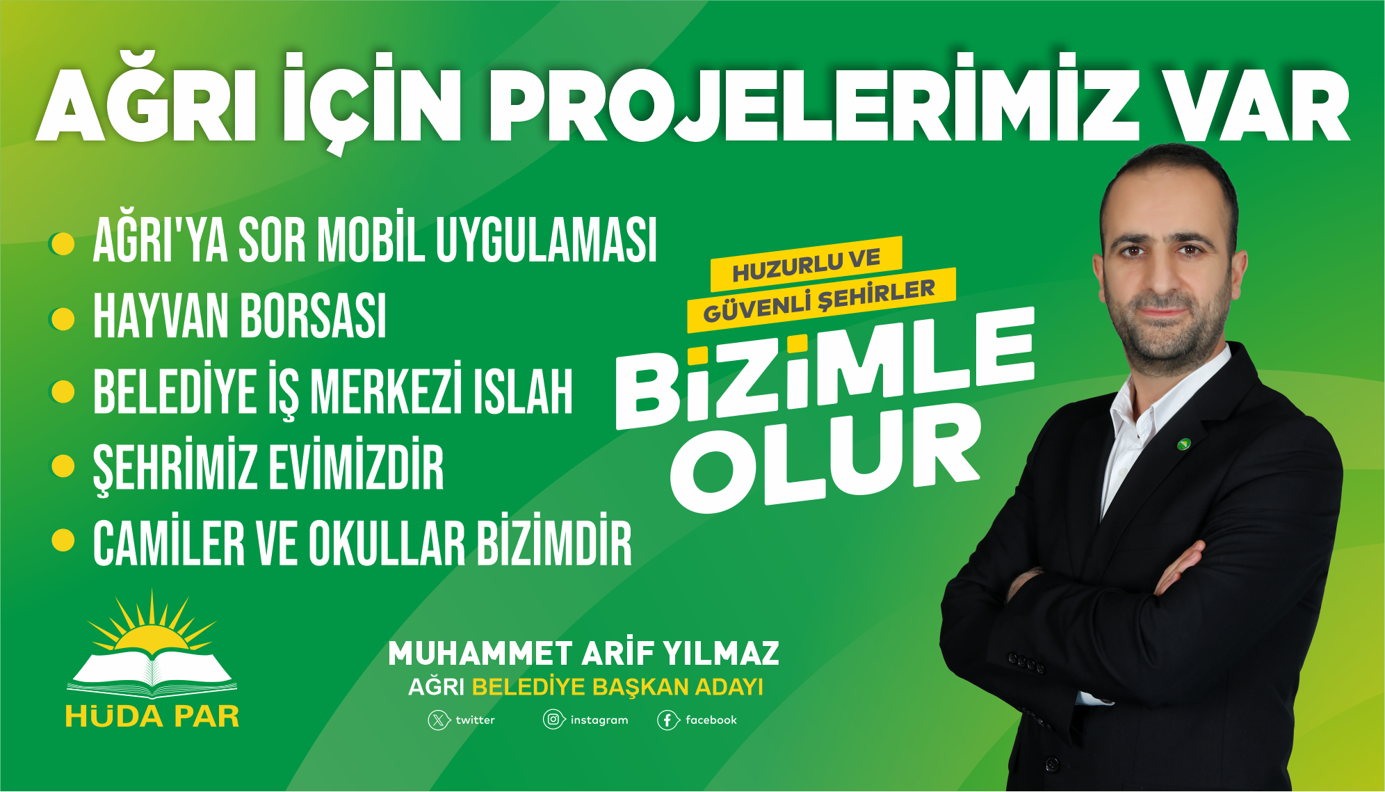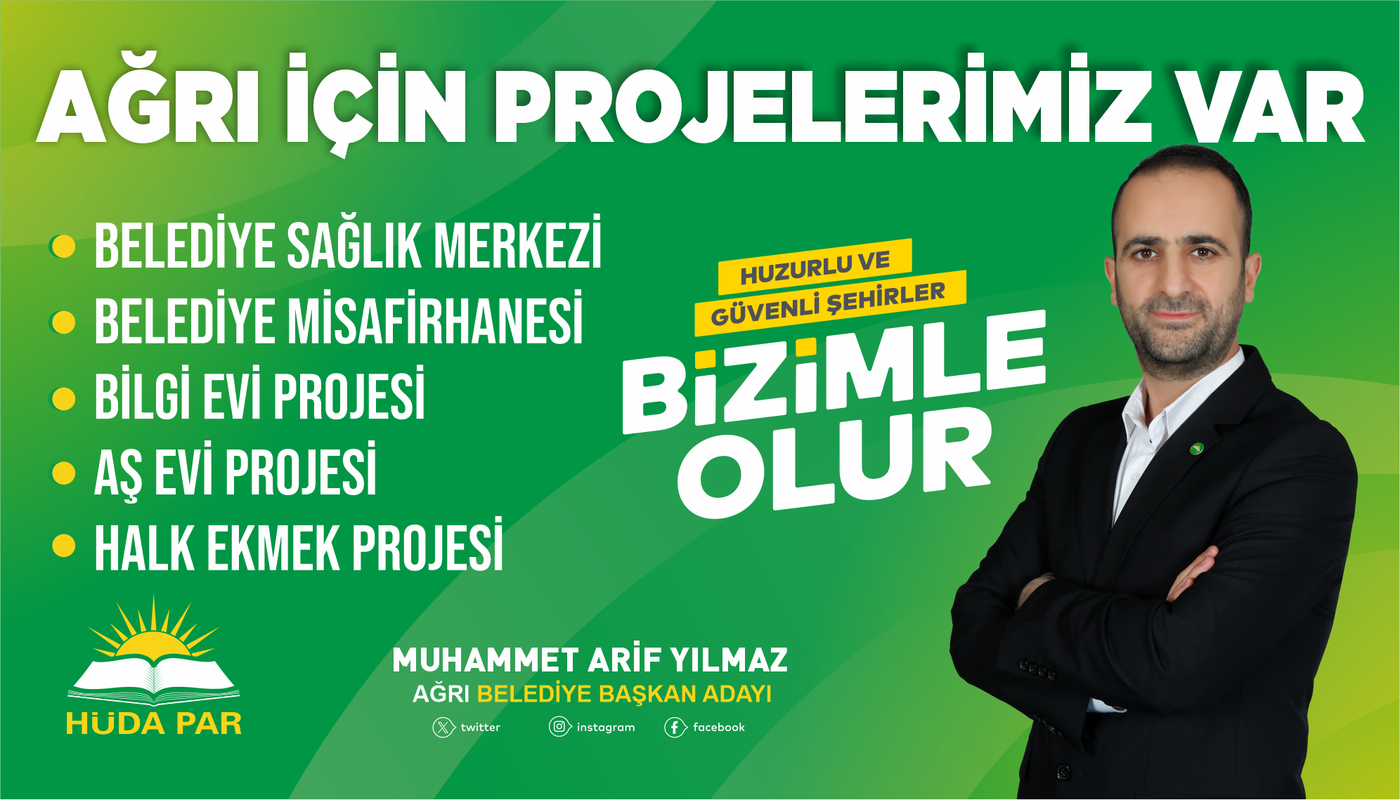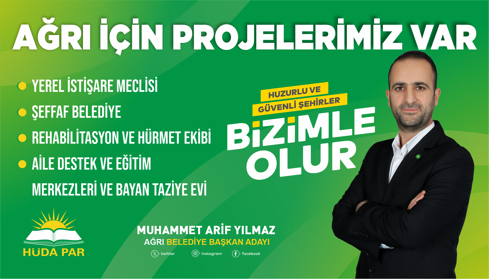 Projelerinin uygulanabilir ve büyük bütçeler istemediğini belirten HÜDA PAR Ağrı Belediye Başkan Adayı M. Arif Yılmaz, hepsinin hayata geçirilmesi ile kentin çok güzel bir değişim yaşayacağını vurguladı.