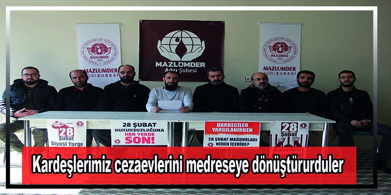 MAZLUMDER Ağrı Şubesi, 28 Şubat sürecinde İslami hassasiyetleri nedeniyle halen tutuklu bulunan Müslümanların mağduriyetine dikkat çekmek için basın açıklaması düzenledi.