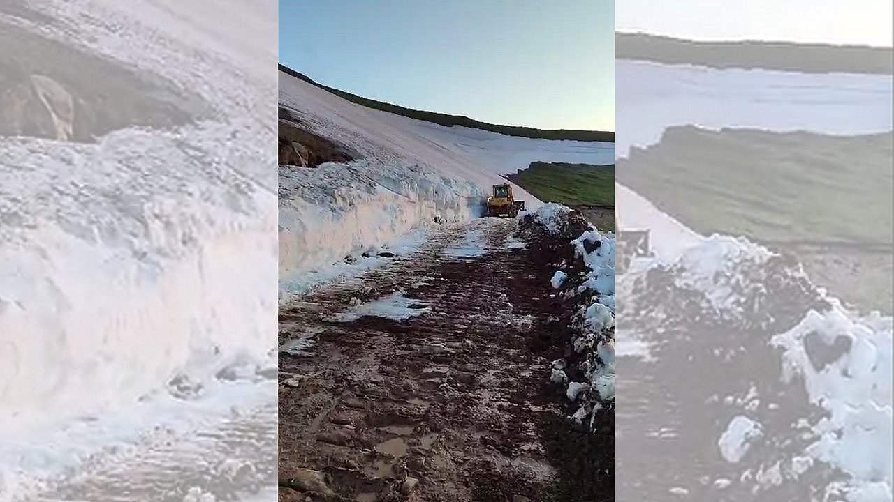 Kavurucu sıcakların aksine serin havanın yer yer etkili olduğu Doğu Anadolu illerinde yüksek rakımlı köy yollarında kar küreme çalışması yürütülüyor.