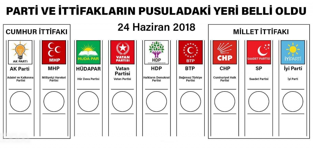 "Bu seçimlerde ilk defa ittifakla seçime katılınabilecek. AK Parti ile MHP, Cumhur İttifakı, CHP, İYİ Parti, SP ve DP'de, Millet İttifakı ile seçime katılacaklardır. Oy pusulasındaki sıralama soldan sağa doğru olacaktır. İttifak içindeki partilerin sıralaması için de kura çekilecektir. Kura tüm partilere hayırlı olsun." (İLKHA)