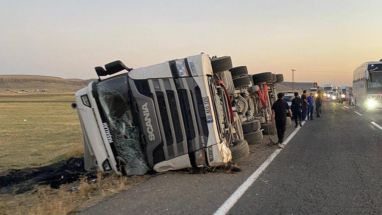 Seyir halindeyken sürücünün direksiyon hakimiyetini kaybettiği tır Ağrı'nın Patnos ilçesinde yan devrildi.