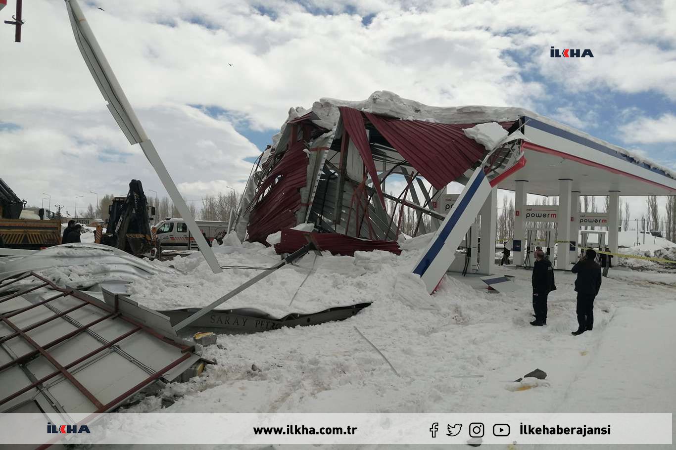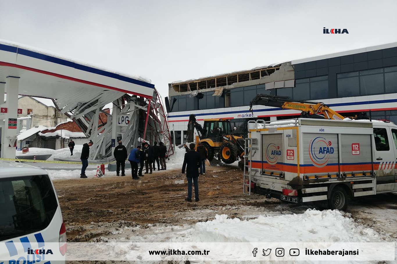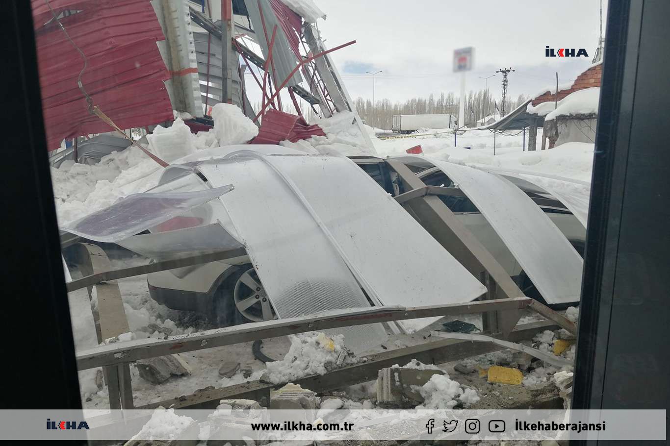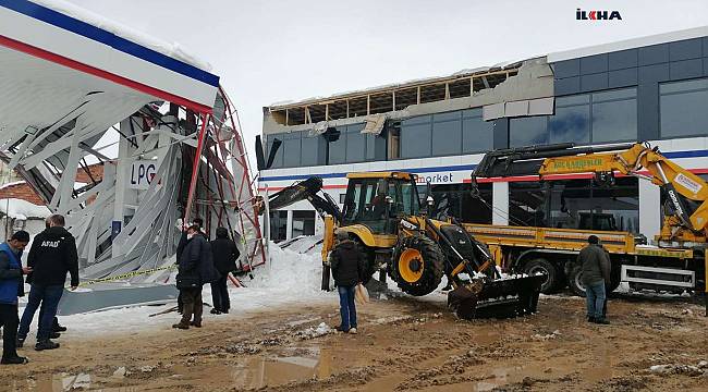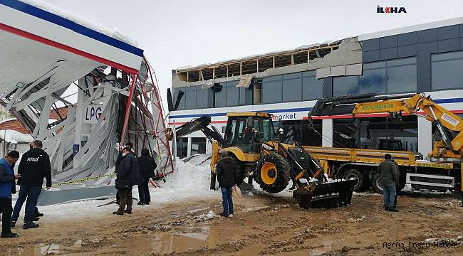 Eleşkirt ilçesi çevreyolunda bulunan bir akaryakıt istasyonunun çatısında bulunan yoğun kar rüzgârın da etkisiyle park halindeki bir aracın üzerine çöktü.