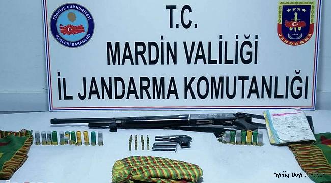 Adresteki aramada ruhsatsız tabanca, av tüfeği, örgütün renklerini simgeleyen bez parçaları ile PKK ve elebaşı Abdullah Öcalan'ı övücü ifadelerin yazılı olduğu defter ele geçirildi.