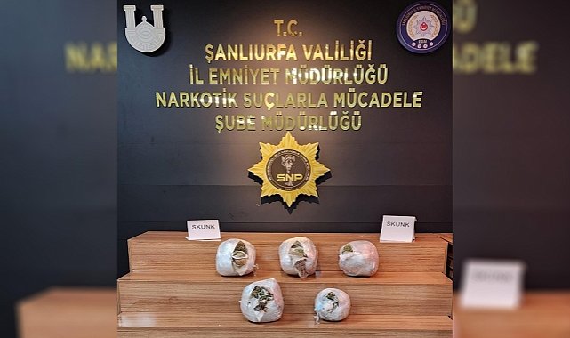 Şanlıurfa Valiliği tarafından yapılan açıklamada,"25 Ocak 2023 tarihinde Narkotik Suçlarla Mücadele Şube Müdürlüğü görevlilerimizce Uyuşturucu Madde Kullanımı ve Satışıyla mücadele kapsamında yapılan operasyonda; Şanlıurfa Gaziantep otoyolunda durdurulan bir aracın bagajında yapılan aramalarda; 5 paket halinde 9 kilo 900 gram gelen skunk maddesi ele geçirilmiş olay ile bağlantısı bulunan şüpheli 2 şahıs yakalanarak gözaltına alınmış ve haklarında Uyuşturucu Madde Ticareti Yapma k ve Nakletmek suçundan adli tahkikata başlanılmıştır." denildi. (İLKHA)