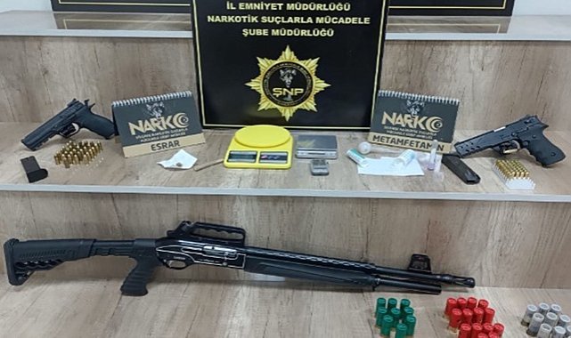İlçe Emniyet Müdürlüğü Narkotik Suçlarla Mücadele ekipleri, Camikebir Mahallesi'ndeki bir adrese operasyon düzenledi. Yapılan aramada, 40 gram sentetik uyuşturucu, 3 hassas terazi, bir uyuşturucu kullanma aparatı, 2 ruhsatsız tabanca, bir ruhsatsız av tüfeği ve 115 mermi ele geçirildi.Operasyon kapsamında A.E., A.R., S.K. ve A.A. isimli şüpheliler gözaltına alınarak ifadeleri alınmak üzere emniyet müdürlüğüne götürüldü. Olayla ilgili soruşturma sürüyor. (İLKHA)