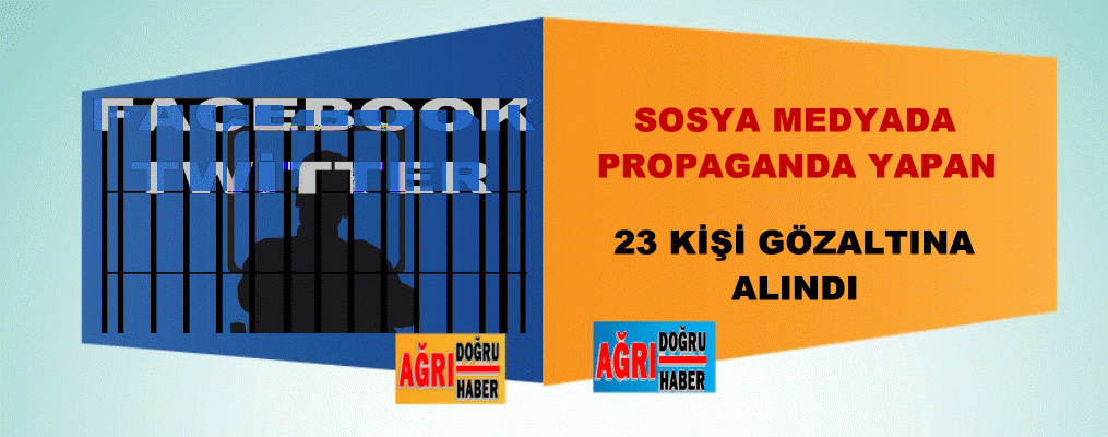 Sosyal medya üzerinden Propaganda yaptıkları şüphesiyle 23 kişi gözaltına alındı.Gözaltına alınan kişiler Emniyet müdürlüğünde sorguları devam etmektedir.Ağrı Valiliğinden yapılan açıklamada şöyle denildi