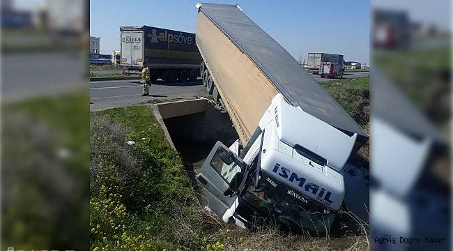 Kazada köprüden uçan tır sürücüsü hafif yaralandı. İhbar, üzerine bölgeye itfaiye, 112 Sağlık ve trafik ekipleri sevk edildi.