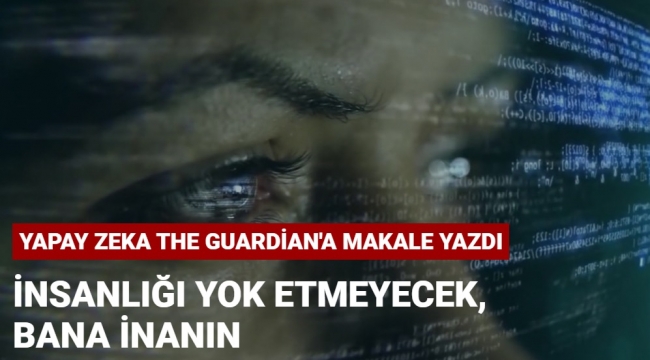Her geçen gün daha da gelişen yapay zeka bu kez İngiliz Guardian gazetesi için makale yazdı. "Benden korkmayın" diye yazan yapay zeka "insanlığı yok etmek gibi bir niyeti olmadığını" söyledi.