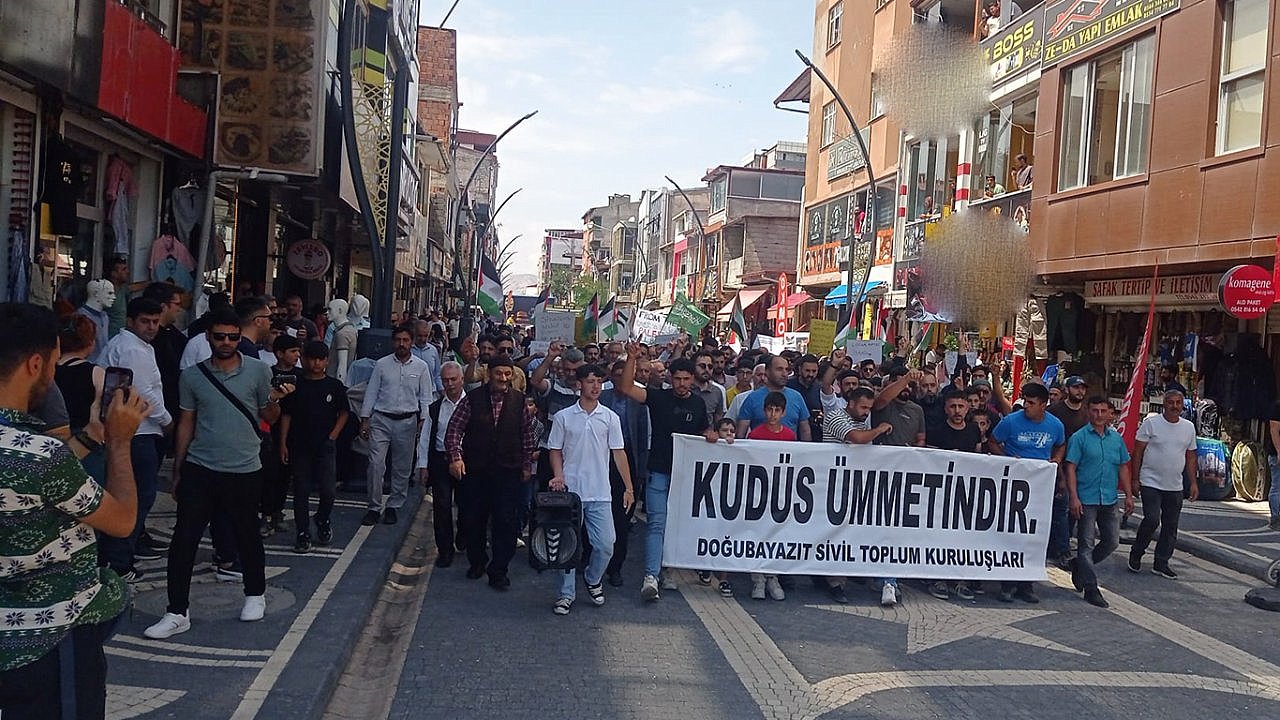 Ağrı'nın Doğubayazıt ilçesinde bir araya gelen STK'lar ve halk yürüyüş gerçekleştirdi, basın açıklaması düzenledi.